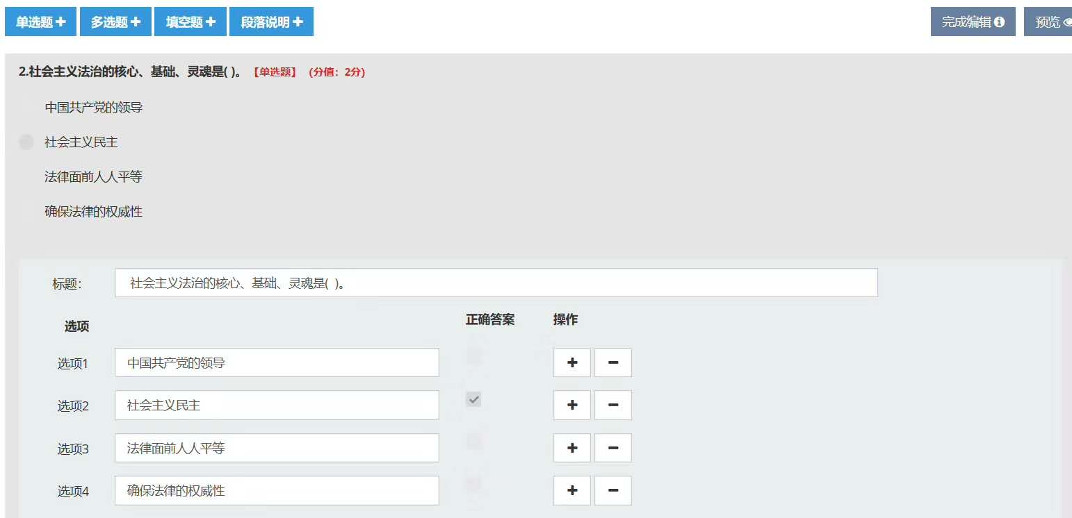 簡易性:支持批量導入各種類型文件題庫,支持固定試卷、抽題試卷和隨機試卷,自動生成統(tǒng)計報表。